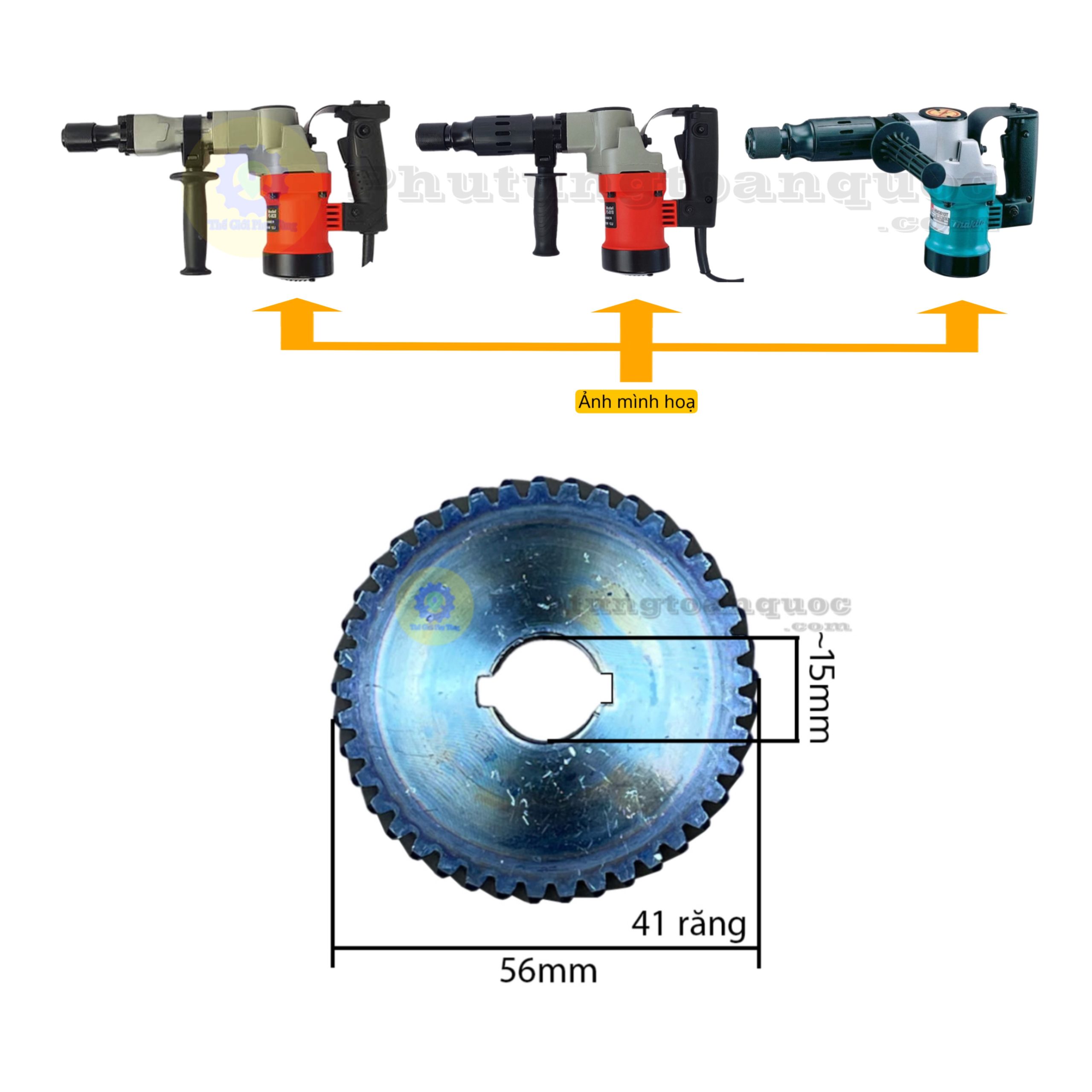 Bánh Răng Máy Đục 17mm Mã Máy 0810 Với Các Hãng Makita – T-Max – Hikari – Panda