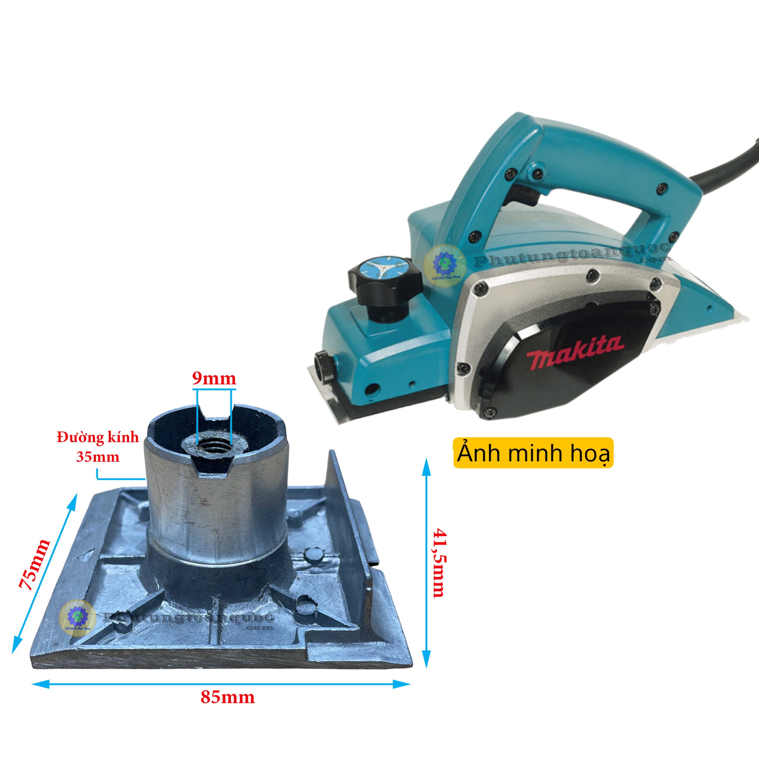 Mặt Đế Nhôm Máy Bào Gỗ Không Cọc Kích Thước (75x85mm)