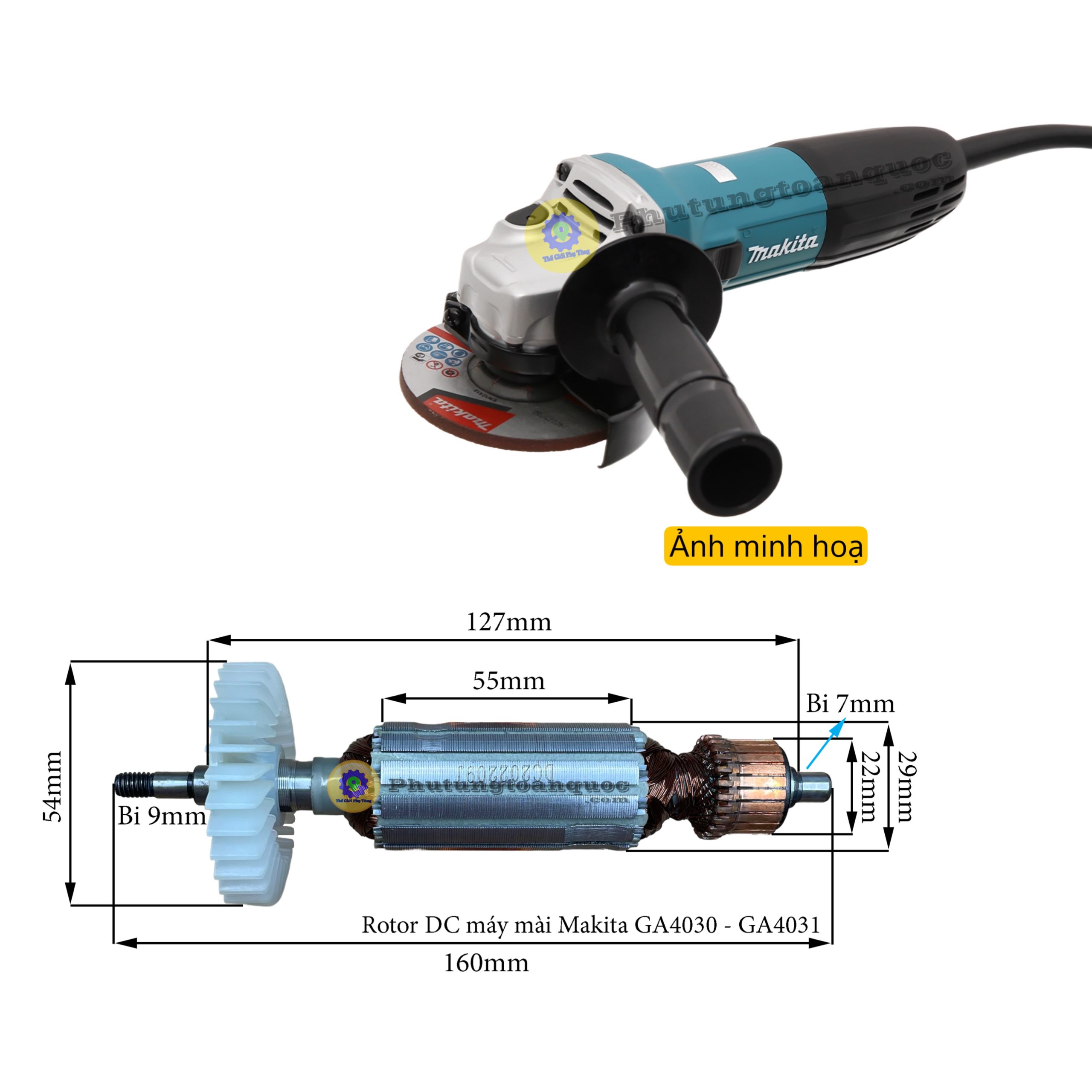 Rotor/Ruột Máy Mài Góc 100mm Makita GA4030 – GA4031 Hoặc Các Hãng TQ Có Mã 4030
