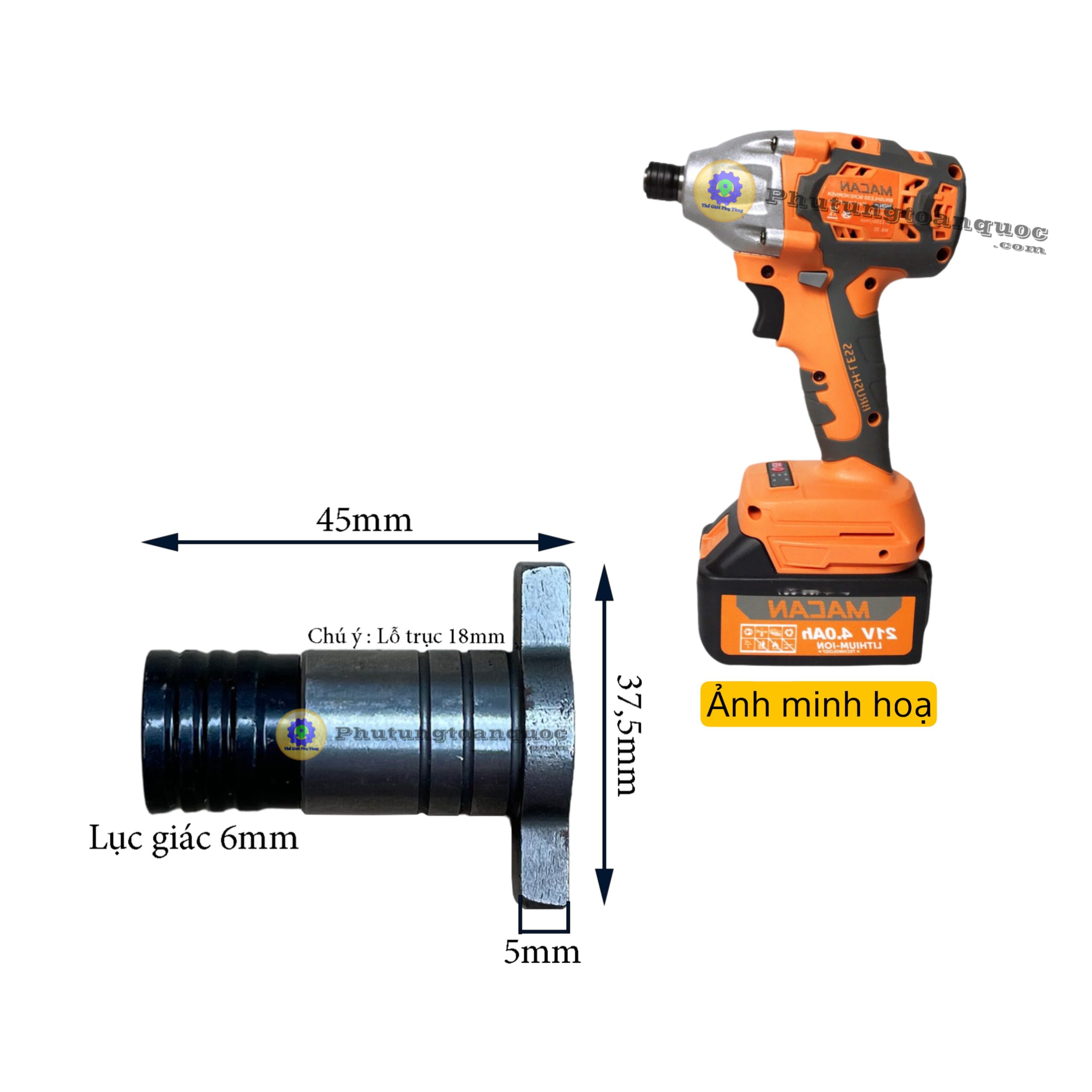 Trục Chuyên Vít Lục Giác 6mm Đường Kính Trục 18mm Chuyên Dụng Máy Cầm Tay Pin