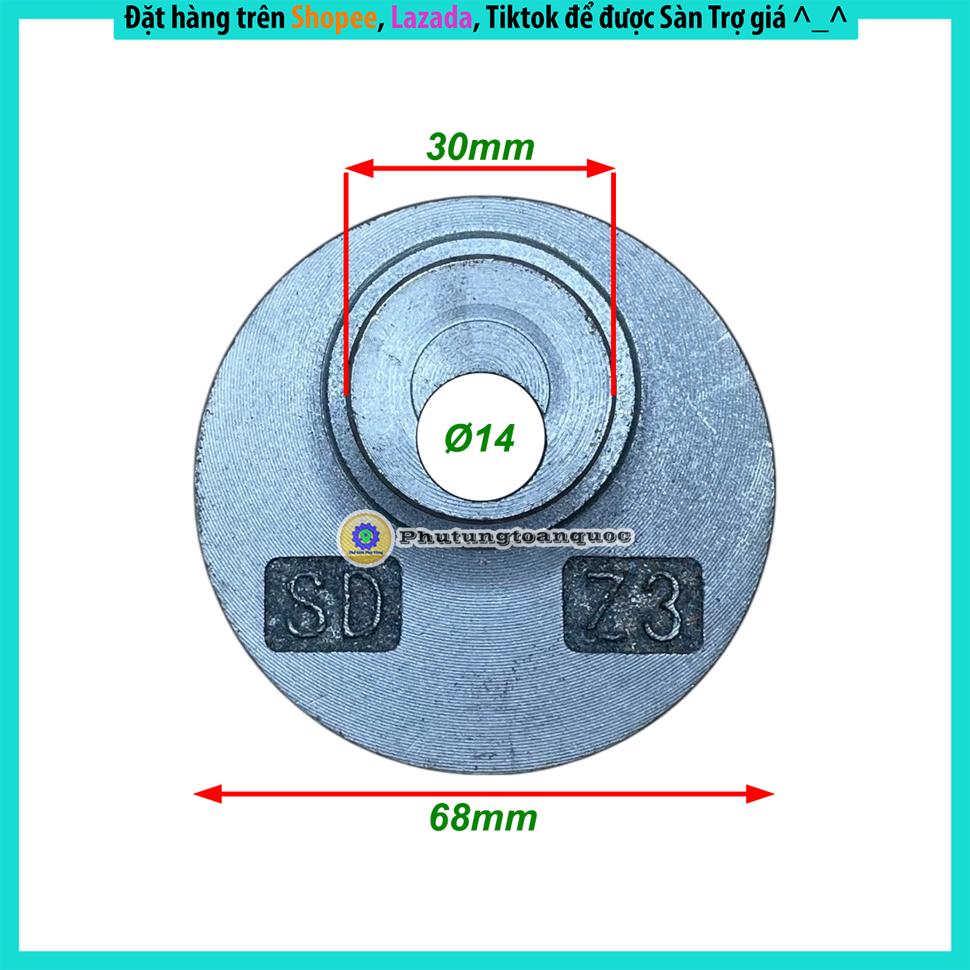 – Lỗ trục: 14 mm